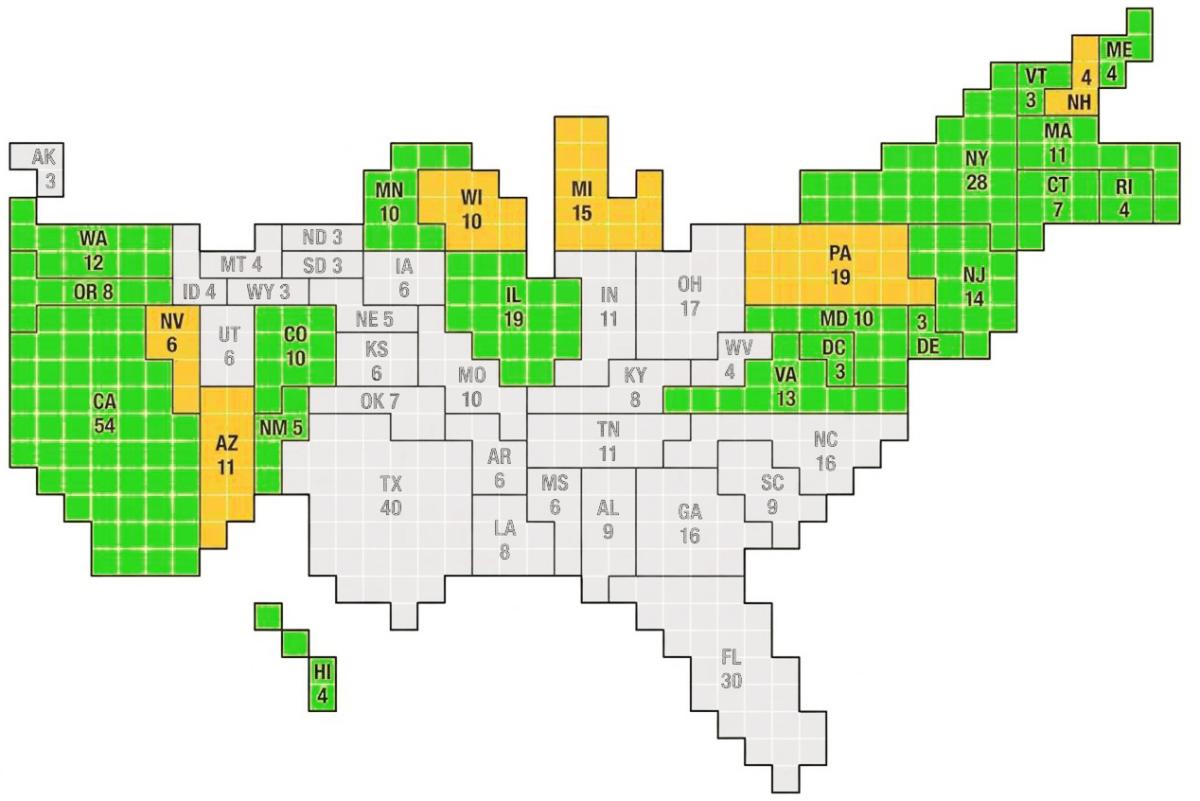 The National Popular Vote Interstate Compact will guarantee the Presidency to the candidate who receives the most popular votes in all 50 states and the District of Columbia (Explanation). So far, it has been enacted into law by 17 states and DC, which together possess 209 electoral votes (Status in the states). The Compact needs an additional 61 electoral votes (that is, a total of 270) to be activated.